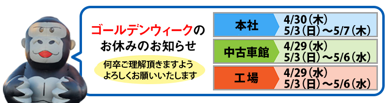 ※サービス工場は4/29(土)・30(日)、5/3(水)〜7(日)まで休業